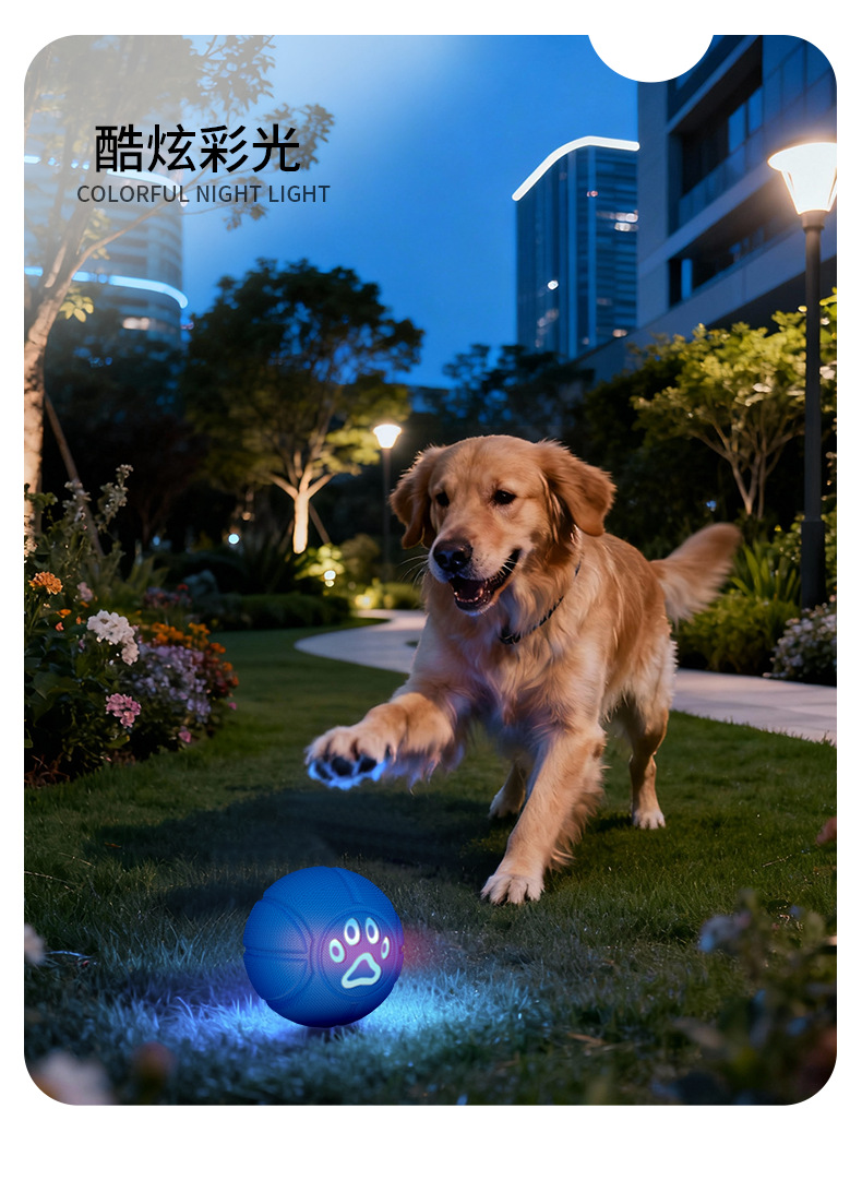 Smart Electric Pet Ball, LED light up, soft TPU durable chew, rolling design, perfect for outdoor dog interactive play & teeth care.